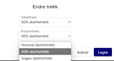- Det vil da automatisk beregnes 50% skattetrekk på alle ansatte i inneværende lønnskjøring.