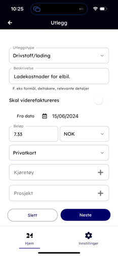 🤖 24SevenOffice Economy benytter både tekstgjenkjenning og AI for å gjøre det så enkelt som mulig å sende inn dine utlegg. Når du oppretter et nytt utlegg via "Ta bilde", "Kamerarull" eller "Filer" betyr dette at systemet automatisk fyller inn forslag til Utleggstype, beskrivelse, dato og beløp. Det er viktig at du selv ser over alle felt før innsendelse. Hvis du ønsker å skru av automatiske forslag for en eller flere av feltene kan dette enkelt gjøres under